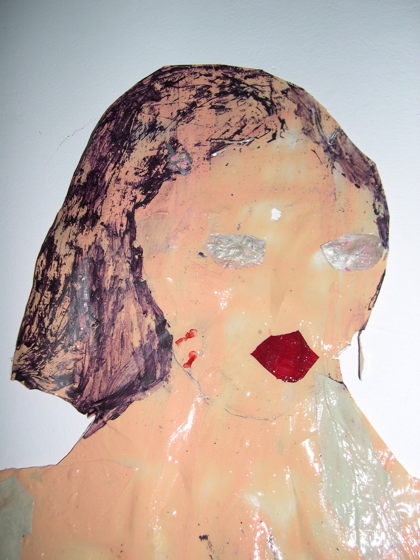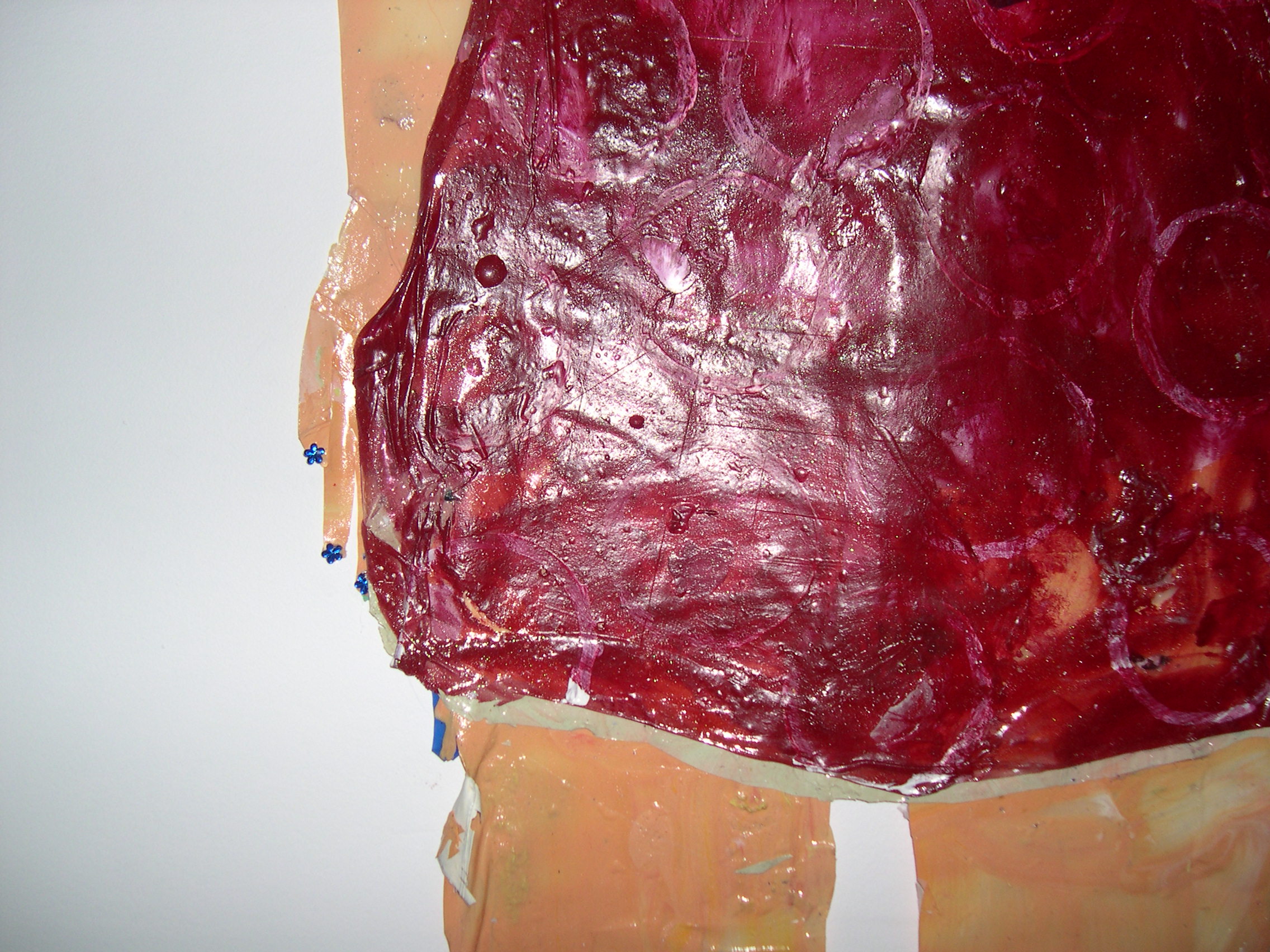 acrylic paint, pen, beads, paper, collage